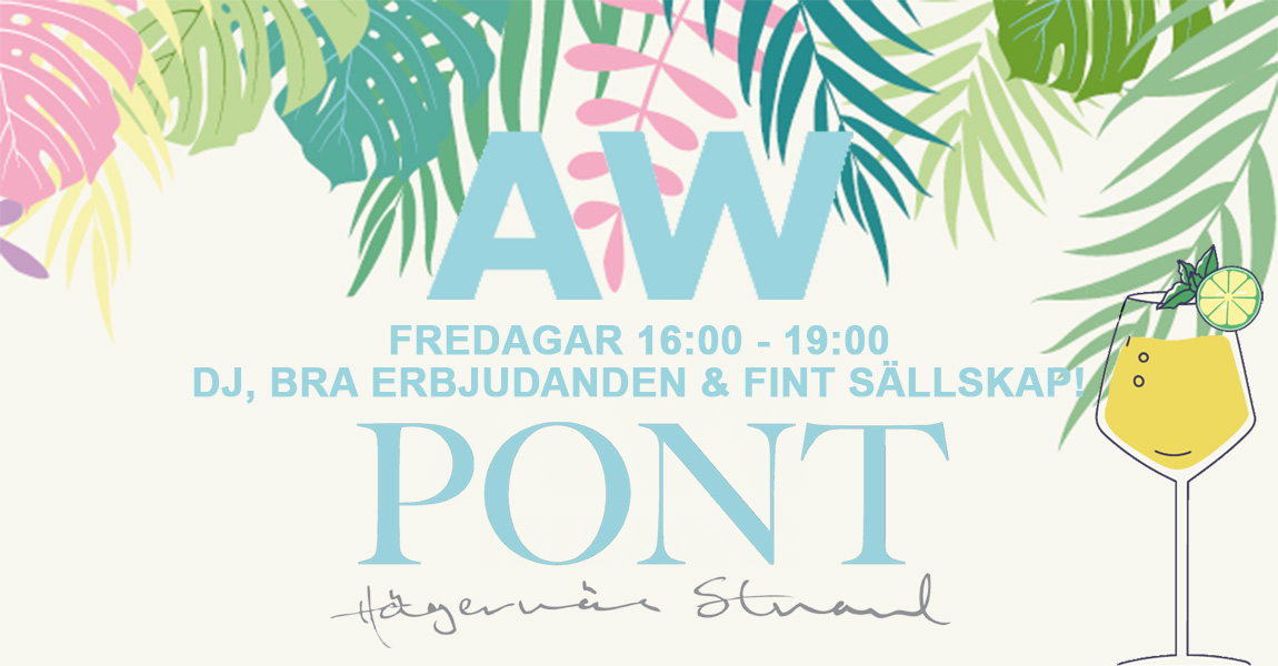 Vänner! Nu kör vi AW på Fredagar, 16:00 - 19:00. Vi kommer ha bra erbjudanden och DJ som roddar schysst bakgrundsmusik i fint sällskap - I vått & torrt. Vid oväder håller vi till i Bistrobaren, då solen skiner såklart på strandkanten sköna uteserveringen.